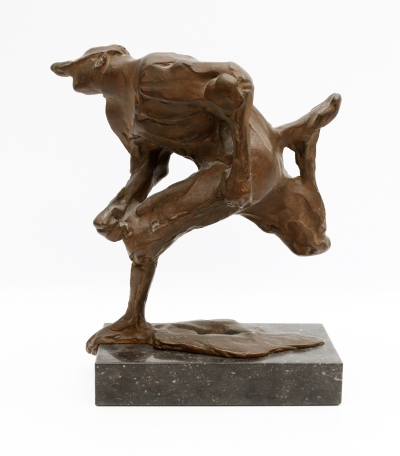 'Homerunner' uit de eerste serie honkbalspelers. Gesigneerd en met bronsgietersmerk Schmäke, Düsseldorf. Niet gedateerd, vervaardigd in 1956.