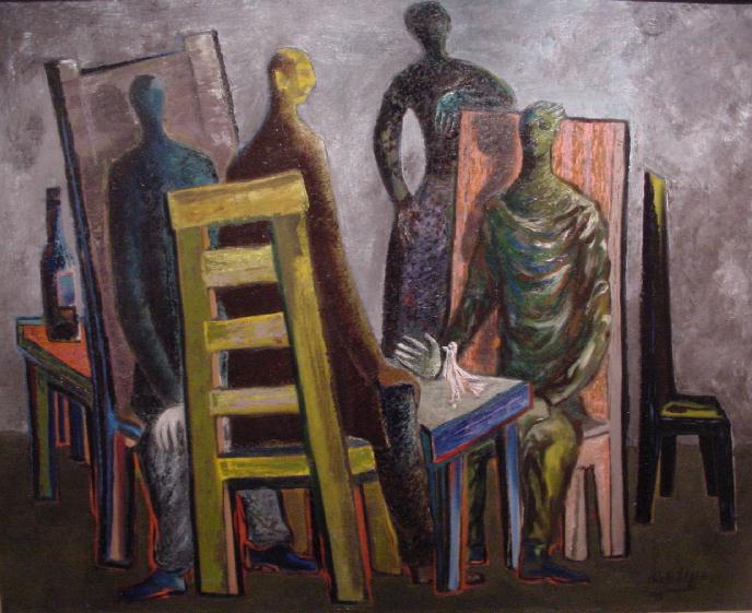 Aquarel en houtskool op papier. Gesigneerd midden-rechts met monogram. Op achterzijde diverse etiketten van musea o.a. Stedelijk Museum Amsterdam, Van Abbe Museum Eindhoven.