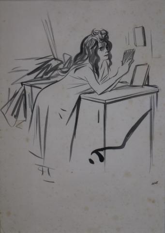 Inktschildering op papier,rechtsonder onduidelijk atelierstempel en genummerd \'3048\'.