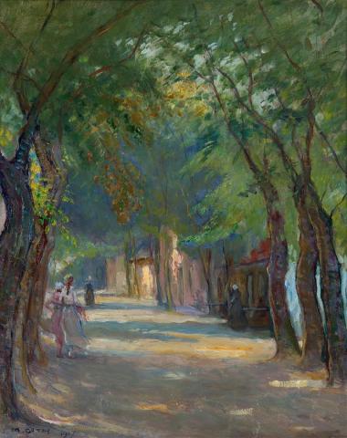 Olieverf op papier( marouflee), gesigneerd en gedateerd 1917 l.o., board.
