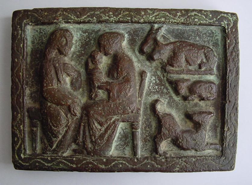 Gepatineerde bronzen sculptuur, gemonogrameerd KG.