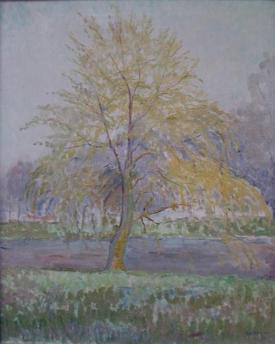 Olieverf op paneel, gesigneerd l.o., label op achterzijde 'Hors concours Paris- Membre du Jury'