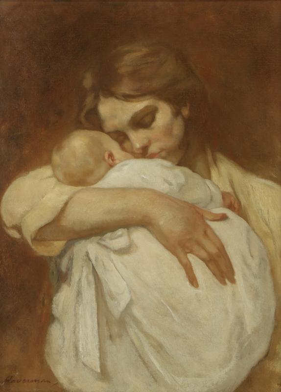 Olieverf op doek, gesigneerd. Achterzijde etiket Stedelijk Museum Amsterdam. N.B. Het schilderij is in 1907 gekocht door de ‘Vereeniging tot het vormen van een Openbare Verzameling van Hedendaagsche Kunst te Amsterdam’ uit de veiling van het Academiefonds, opgericht ter herinnering aan (professor) August Allebé. Aangezien de Vereeniging geen eigen depotruimte had, maar wél een goede band met het Stedelijk Museum, is het werk jarenlang in het museale depot opgeslagen geweest. Op een gegeven moment heeft de Vereeniging toch besloten het werk weer af te stoten, wat er toe heeft geleid dat het in april 1956 bij de veiling Frederik Müller is verkocht.
