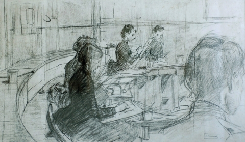 Tekenende jongedames op de Academie voor Beeldende Kunsten