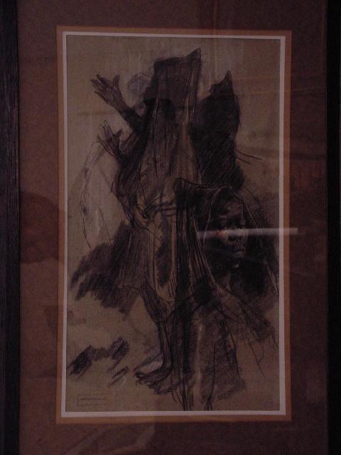Zwart & wit crayontek. op getint papier/gesigneerd met handtek.stempel l.o.