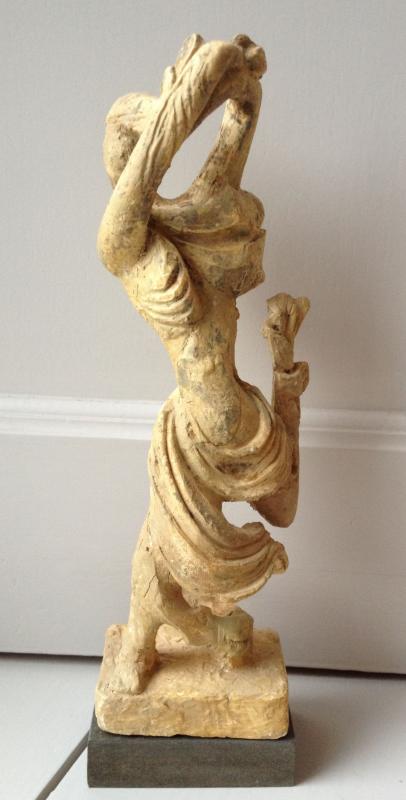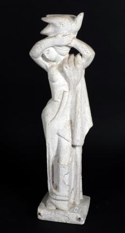 Terra cotta, gesigneerd met monogram op voetstuk. Uniek exemplaat
