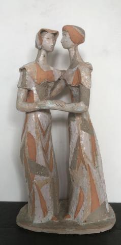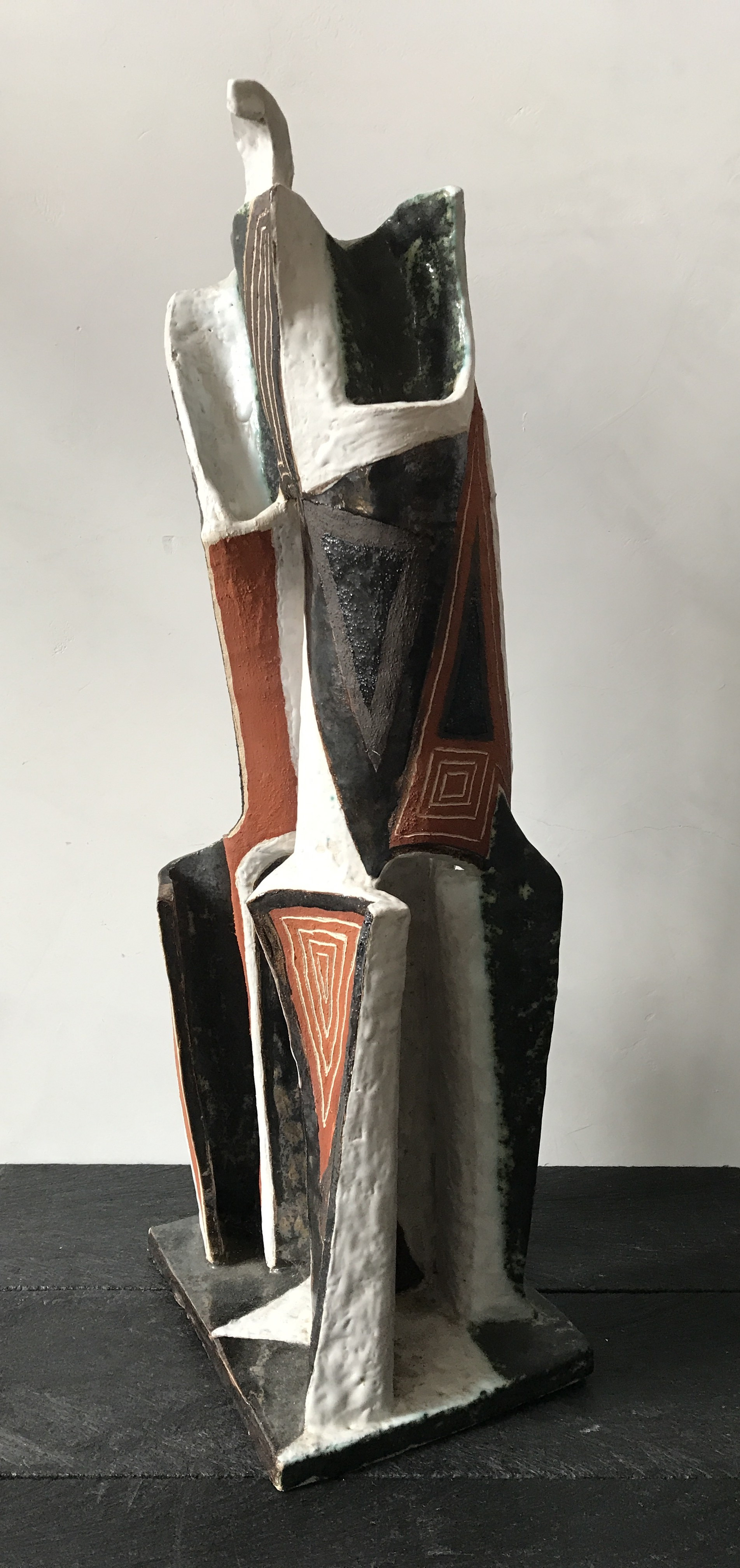 Geglazuurde keramieken sculptuur, gesigneerd met monogram