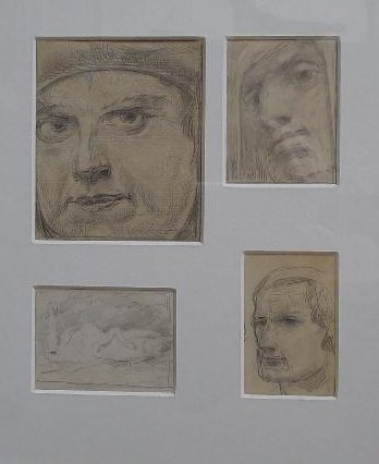 3 portrettekeningen en 1 tekening van 2 zwanen op papier; achterzijde gedrukt: S. Mesdag van Houten