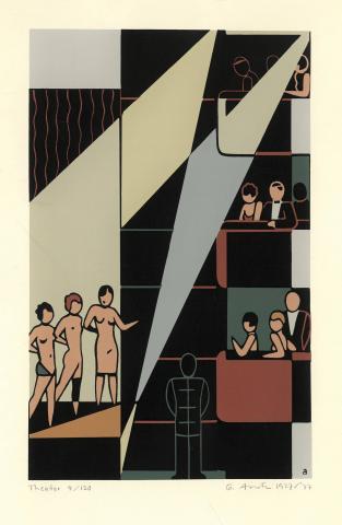 Gekleurde linoleumsnede, gesigneerd, gedateerd, "1927/'77" en genummerd in potlood \"4/120\".