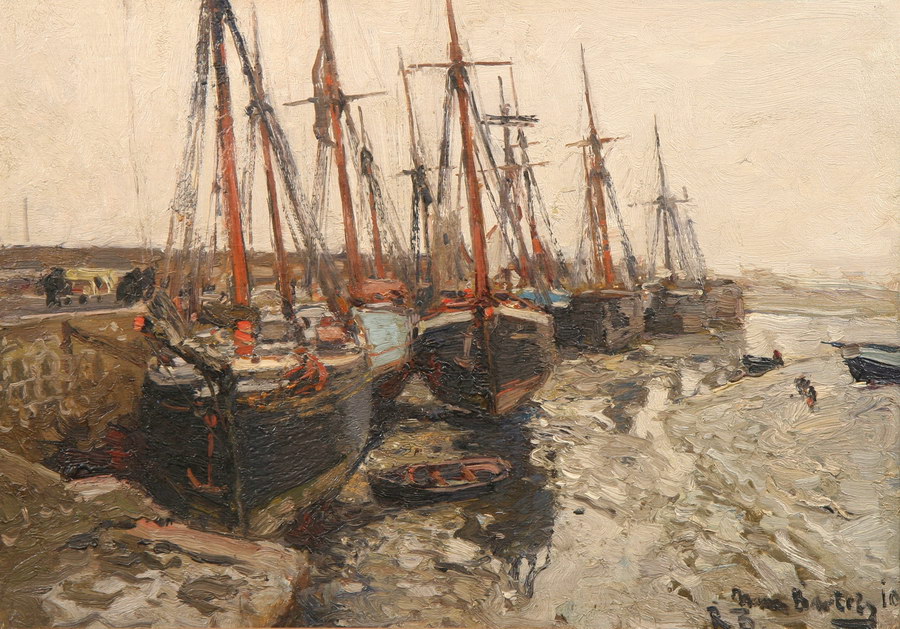 Olieverf op doek, Marouflé, gesigneerd, Tent. Katwijks Museum 1987