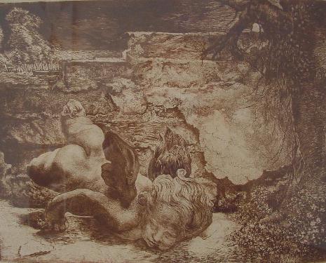 Ets in bruine inkt, gesigneerd. Oplage 19/30
