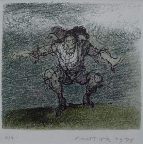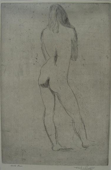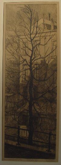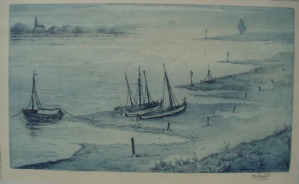 Ets in blauwe inkt/gesigneerd/Herkomst collectie Joop Uiterwaal