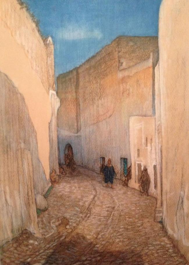 Gekleurd krijt op papier. Gesigneerd l.o. en 'Tetuan' r.o.