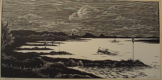 Houtsnede/gesigneerd/Afb. 'Het grafisch werk van Dick van Luijn' door J.Juffermans p. 23/Herkomst collectie Joop Uiterwaal