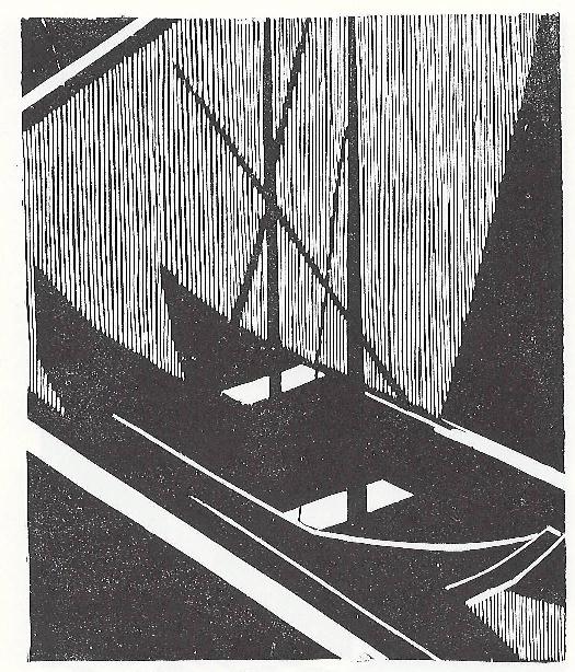 Ets met monogram van de kunstenaar l.b.
