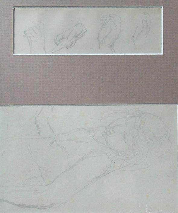 2 potloodtekeningen, voorstellend (verso) meisjesportret, handen, (recto) vlinders en figuren/Herkomst:J.McClure & Sons, Glasgow.