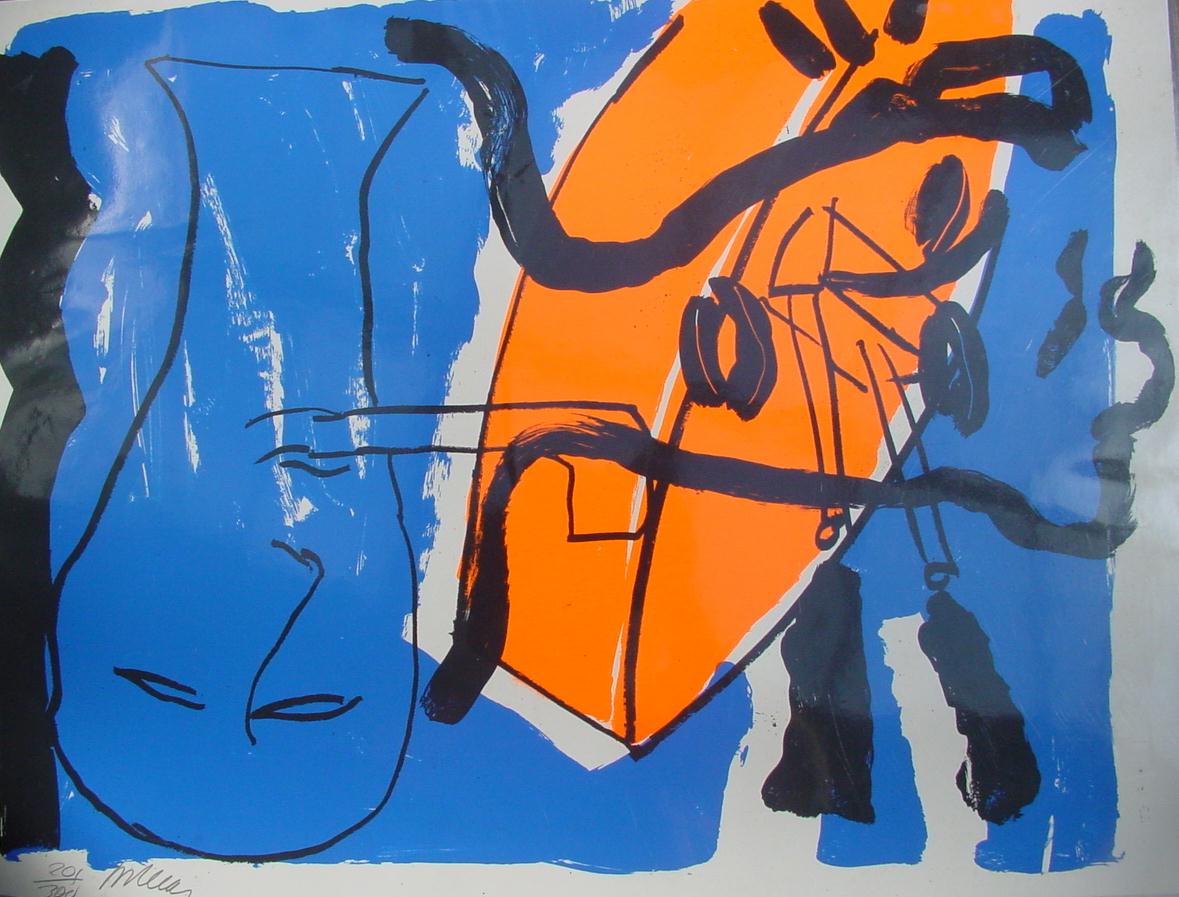 Houtsnede, gesigneerd met monogram