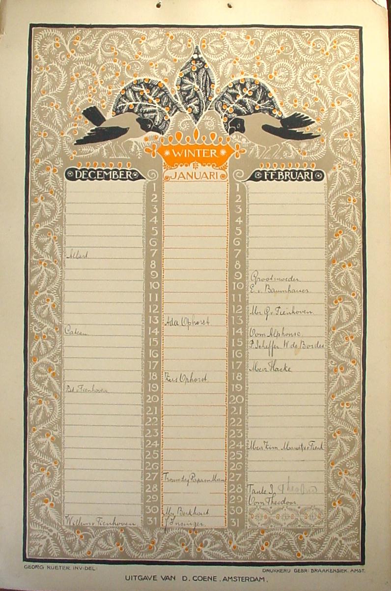 Complete 4-bladige verjaardagskalender N.B.Ingevuld met namen.