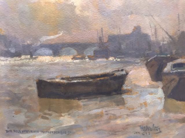 Schepen op de rivier bij Waterloo Bridge te Londen