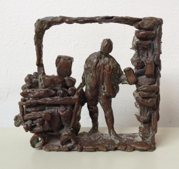 Groen gepatineerd bronzen sculptuur. Gesigneerd Marius en met datering. Dit beeld is een voorstudie voor het grote beeld op de binnenplaats van het Conservatorium te Zwolle.