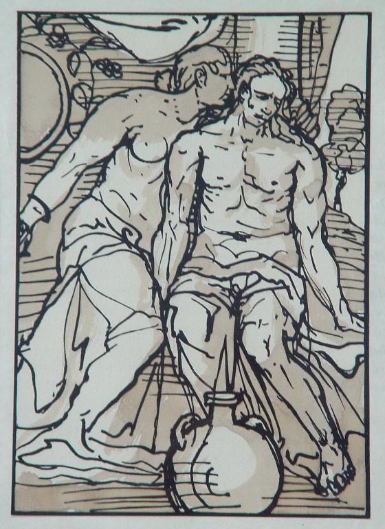 Gewassen sepia, r.o. atelierstempel,