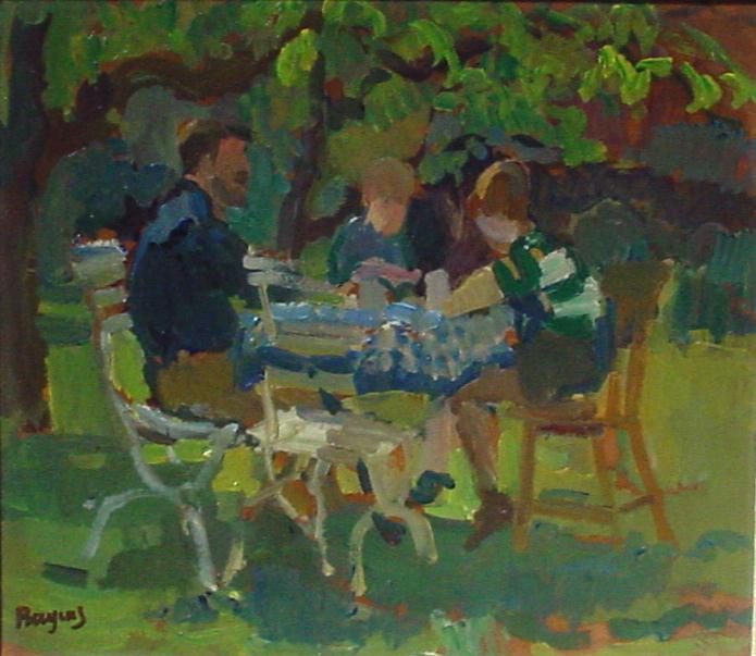 De beeldhouwer Paul Grégoire met zijn zoons Pépé en Kenne