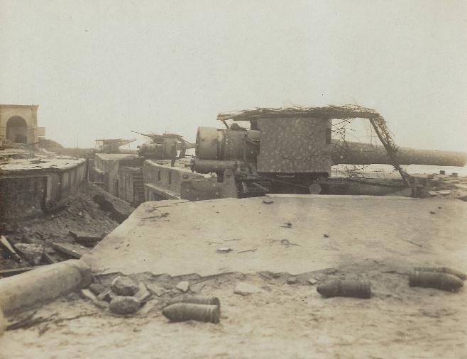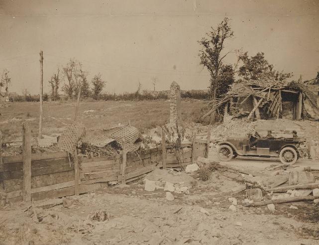 Duitsche barricade waar de Hindenburg linie doorboken is geweest.
