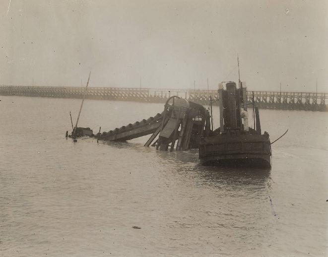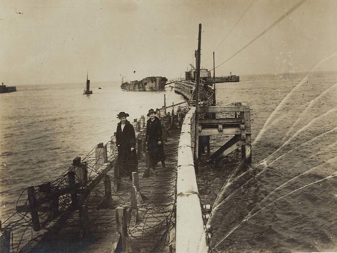De Duitschers hebben de ingang van Ostende met baggermolens geblokkeerd.