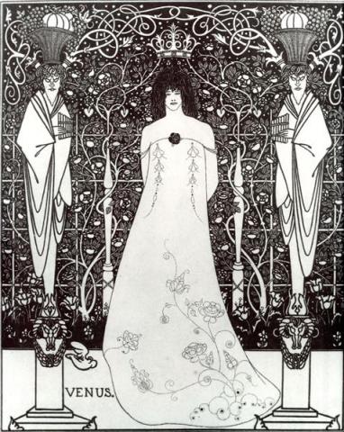 Lithographie, frontispice voor The Story of Venus and Tannhäuser, gebaseerd op Wagner's opera.Zonder de tekst.
