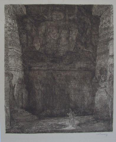Ets met droge naald, gesigneerd in potlood "Eug. Béjot 23" en met titel in de plaat.