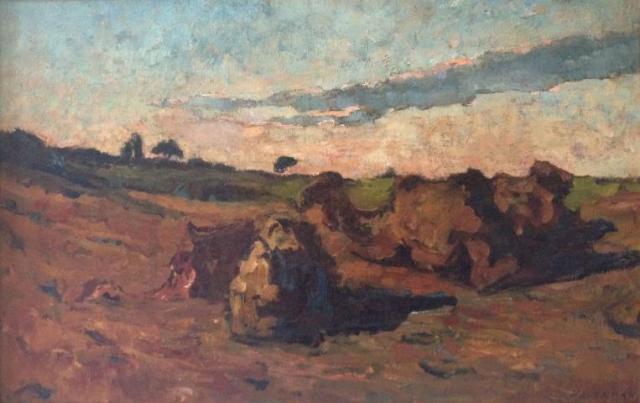 Olieverf op doek (Gemaroufleerd, gesigneerd en gedateerd r.o.