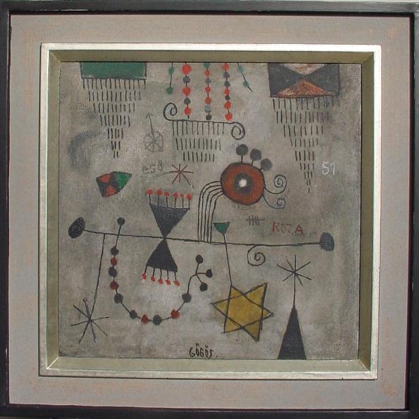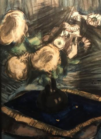 Aquarel en houtskool op papier. Gesigneerd midden-rechts met monogram. Op achterzijde diverse etiketten van musea o.a. Stedelijk Museum Amsterdam, Van Abbe Museum Eindhoven.