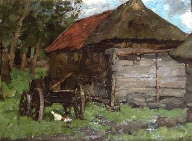 Olieverf op board, gesigneerd l.o.& op achterzijde met monogram.