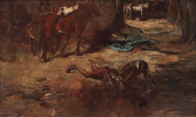 Olieverf op papier, geplakt op paneel, gesigneerd r.o.