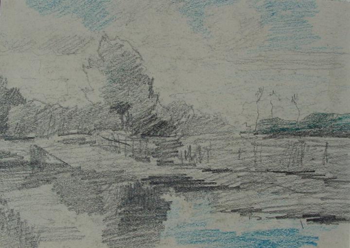 Zwart krijt op papier. Atelierstempel en verzamelaarsstempel.