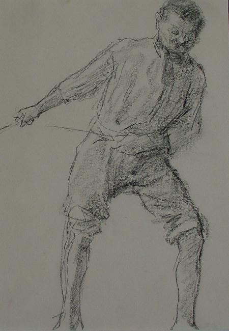 Rood krijt op papier, gesigneerd en gedateerd '37.
