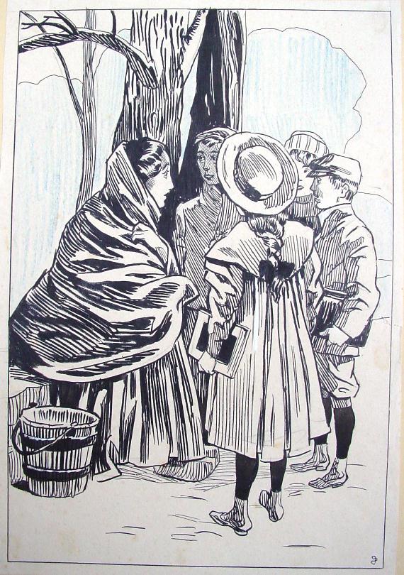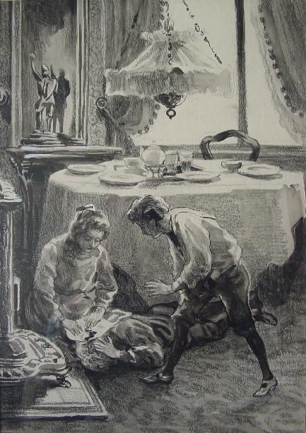 Zwart krijt tekening. Afkomstig uit schetsboek