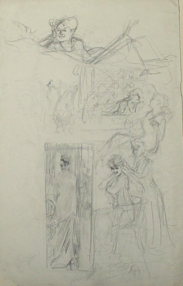 Schetsvel (Diverse voorstudies van caricaturen voor Simplicissimus)