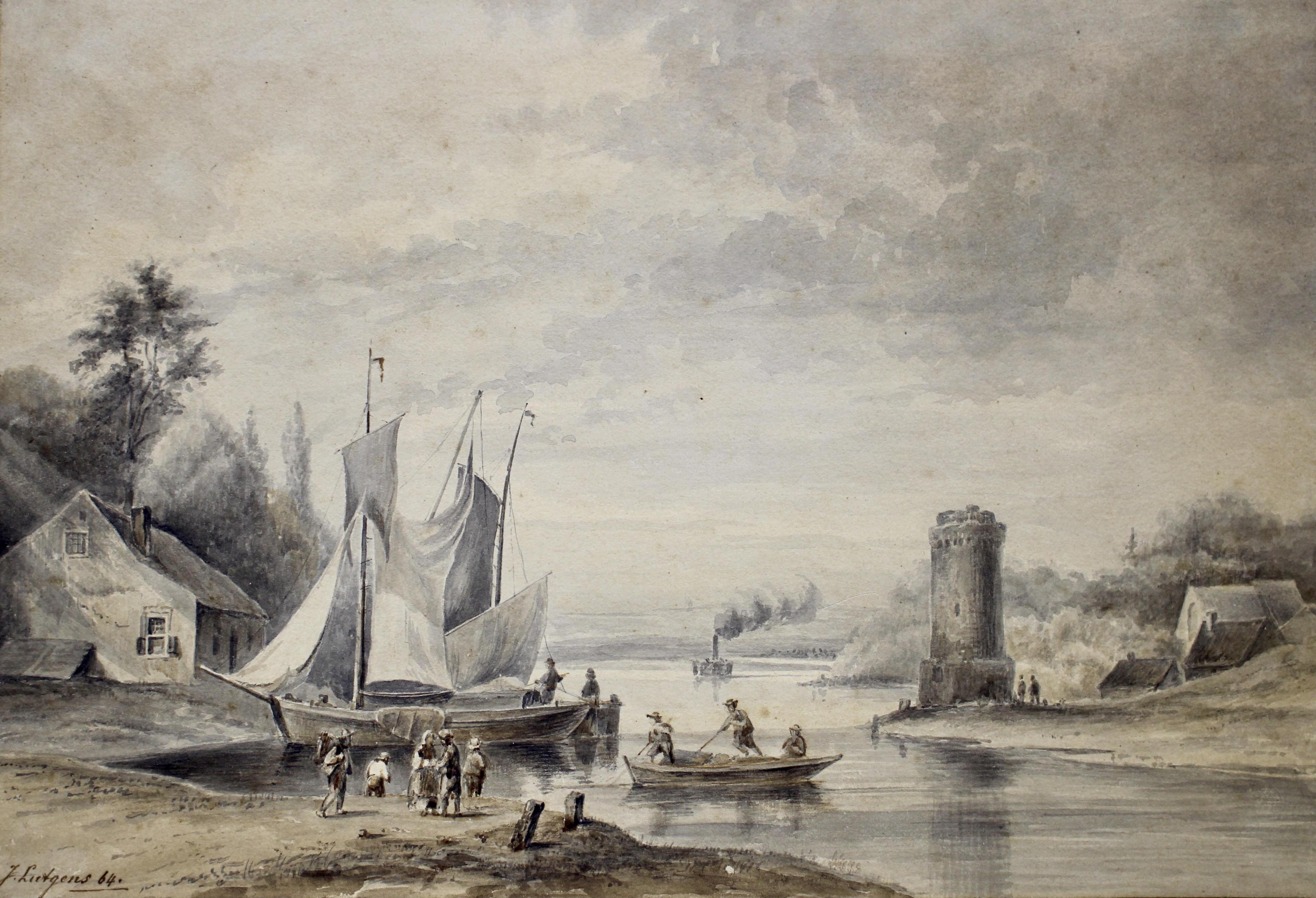 Gewassen inkt & aquarel, gesigneerd & gedateerd '64 l.o.