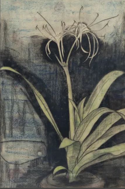 Gekleurd krijt, omschrijving l.o. & signatuur achterzijde